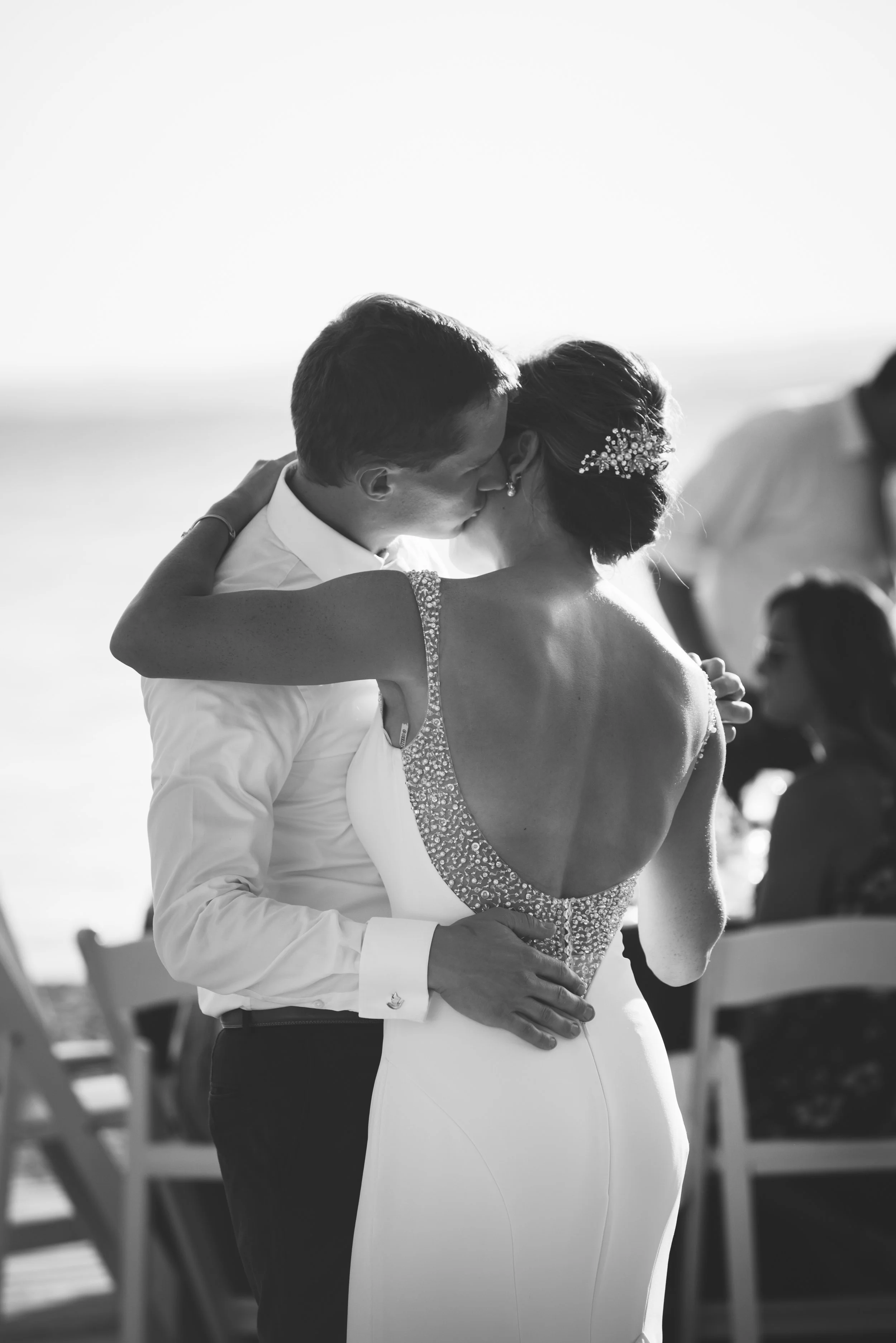In keeping with their tradition of visiting Northern Michigan every summer in July, Ali and Charlie planned their destination wedding accordingly. They chose the beach at the Grand Traverse Resort as the backdrop for both ceremony and reception, decorated in understated gold and blue hues. Here’s a peek at the first day of their newest adventure.